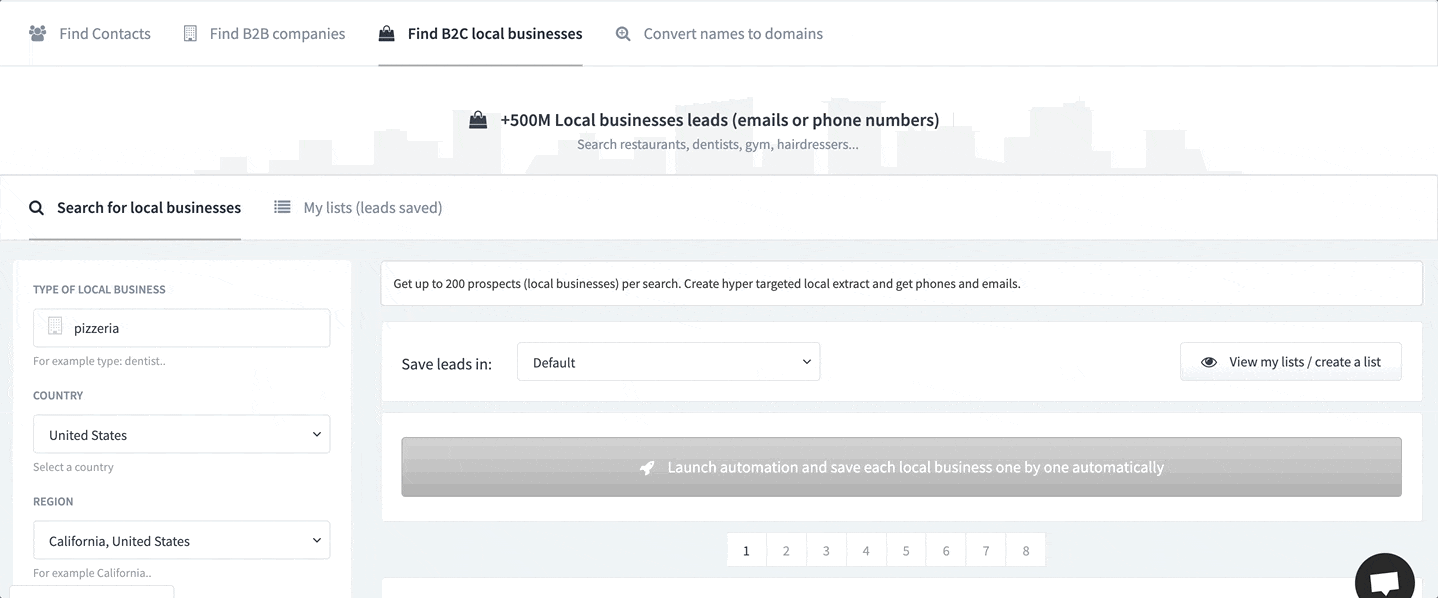 - Trouvez des entreprises locales B2C avec leurs e-mails